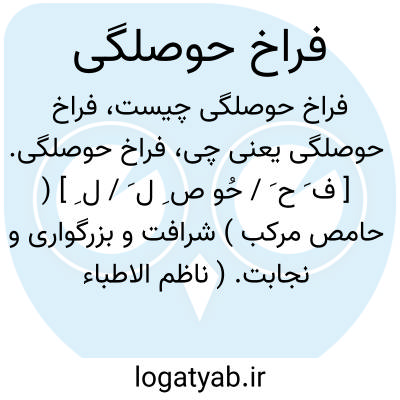 فراخ حوصلگی. [ ف َ ح َ / حُو ص ِ ل َ / ل ِ ] ( حامص مرکب ) شرافت و بزرگواری و نجابت. ( ناظم الاطباء ). || بردباری و وقار. ( آنندراج ). رجوع به فراخ حوصله شود.