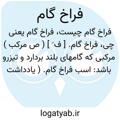 فراخ گام. [ ف َ ] ( ص مرکب ) مرکبی که گامهای بلند بردارد و تیزرو باشد: اسب فراخ گام. ( یادداشت بخط مؤلف ). فراخ قدم. رجوع به فراخ قدم شود.