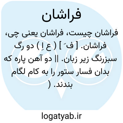 فراشان. [ ف َ ] ( ع اِ ) دو رگ سبزرنگ زیر زبان. || دو آهن پاره که بدان فسار ستور را به کام لگام بندند. ( منتهی الارب ). رجوع به فراش شود.