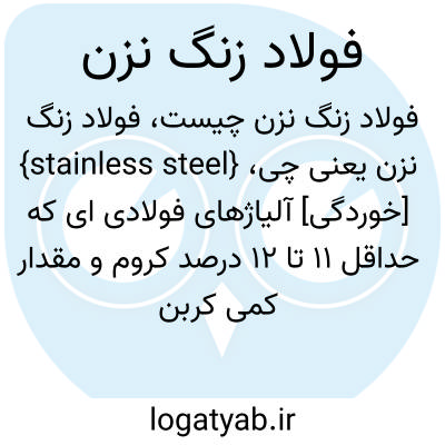 {stainless steel} [خوردگی] آلیاژهای فولادی ای که حداقل 11 تا 12 درصد کروم و مقدار کمی کربن و مقدار بیشتری از عناصری مانند نیکل و مولیبدن دارند