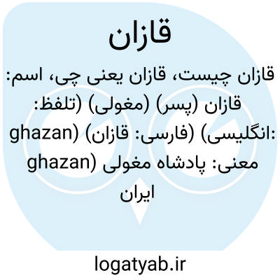 اسم: قازان (پسر) (مغولی) (تلفظ: ghazan) (فارسی: قازان) (انگلیسی: ghazan)
