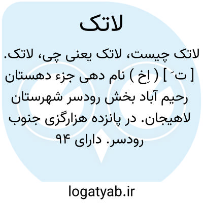 لاتک. [ ت َ ] ( اِخ ) نام دهی جزء دهستان رحیم آباد بخش رودسر شهرستان لاهیجان. در پانزده هزارگزی جنوب رودسر. دارای 94 تن سکنه است. ( فرهنگ جغرافیائی ایران ج 2 ).