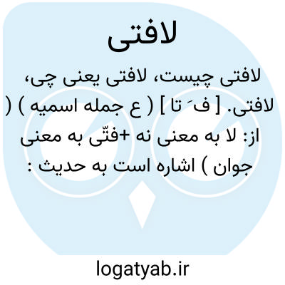 لافتی. [ ف َ تا ] ( ع جمله اسمیه ) ( از: لا به معنی نه +فتّی به معنی جوان ) اشاره است به حدیث: