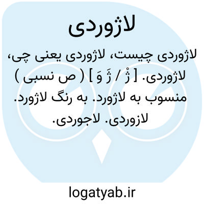 ( صفت ) منسوب به لاجورد. ۱- برنگ لاجورد: برای آنکه نقش تو نگارند دل خاقانی آمد لاجوردی. ( خاقانی لغ. ) ۲- نوعی آبی مرکب از آبی مخلوط با مقداری کم قرمز است. ۳- آسمان: ز بیم چنبر این لاجوردی همی بیرون جهم هزمان ز چنبر. ( ناصر خسرو لغ. )