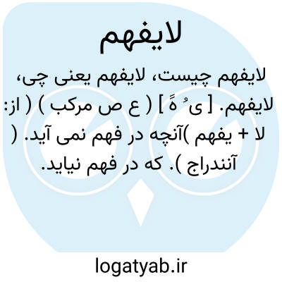 لایفهم. [ ی ُ هََ ] ( ع ص مرکب ) ( از: لا + یفهم )آنچه در فهم نمی آید. ( آنندراج ). که در فهم نیاید.