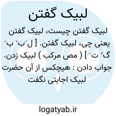 لبیک گفتن. [ ل َب ْ ب َ گ ُ ت َ ] ( مص مرکب ) لبیک زدن. جواب دادن: هیچکس از آن حضرت لبیک اجابتی نگفت و اندیشه اعانتی نکرد. ( تاریخ سلاجقه کرمان ). تلبیه، لبیک گفتن در حج. ( منتهی الارب ).