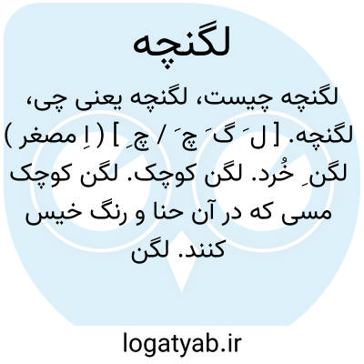 لگنچه. [ ل َ گ َ چ َ / چ ِ ] ( اِ مصغر ) لگن ِ خُرد. لگن کوچک. لگن کوچک مسی که در آن حنا و رنگ خیس کنند. لگن کوچک از برنج که پای سماور نهند.