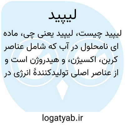 هریک از اعضای گروه بزرگ استرهای اسیدهای چرب که عموماً از واکنش بین یک اسید چرب و گلیسرول پدید می آیند. لیپیدها در الکل محلول و در آب نامحلول اند. لیپیدها ترکیبات اصلی سازنده مومها، چربیها و روغنهای گیاهی و جانوری اند. فسفولیپیدها لیپیدهای دارای یک گروه فسفات اند که معمولاً به یک باز آلی وصل اند و اجزای اصلی غشاهای یاخته های زنده به حساب می آیند.