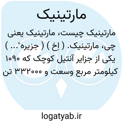 مارتینیک. ( اِخ ) ( جزیره ٔ... ) یکی از جزایر آنتیل کوچک که 1090 کیلومتر مربع وسعت و 332000 تن سکنه دارد. مرکز آن «فوردوفرانس » است. این جزیره بر اثر آتشفشان بوجود آمده است. مهمترین محصول این ناحیه نیشکر است و موز و آناناس هم بعمل می آید. این جزیره در سال 1502 م. بوسیله کریستف کلمب کشف گردیدو در سال 1635 جزء مستعمره های فرانسه شد و از سال 1946 به بعد در شمار یکی از ایالات ماوراء دریای کشور فرانسه درآمد. ( از لاروس ).و رجوع به قاموس الاعلام ترکی ذیل «مارتینیقه » شود.