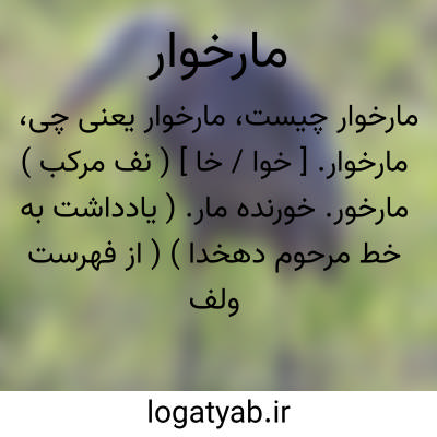 مارخوار. [ خوا / خا ] ( نف مرکب ) مارخور. خورنده مار. ( یادداشت به خط مرحوم دهخدا ) ( از فهرست ولف ): یزدجرد گفت این چندین تن خلق که اندر جهانند بدیدم از ترک و دیلم و سقلاب و هند و سند و هرچند در جهان خلق است بدبخت تر از شما [ عرب ] نیست که شما همه موش خوارید و مارخوار. ( ترجمه طبری بلعمی ).