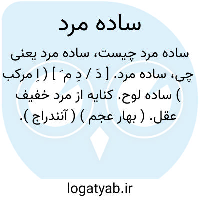 ساده مرد. [ دَ / دِ م َ ] ( اِ مرکب ) ساده لوح. کنایه از مرد خفیف عقل. ( بهار عجم ) ( آنندراج ). نادان. ( شرفنامه منیری ). ابله. ( ملخص اللغات حسن خطیب ). سلیم دل. ساده دل: