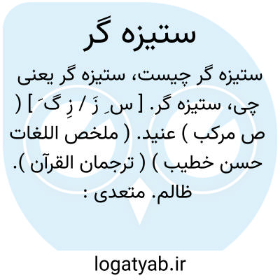 ستیزه گر. [ س ِ زَ / زِ گ َ ] ( ص مرکب ) عنید. ( ملخص اللغات حسن خطیب ) ( ترجمان القرآن ). ظالم. متعدی: