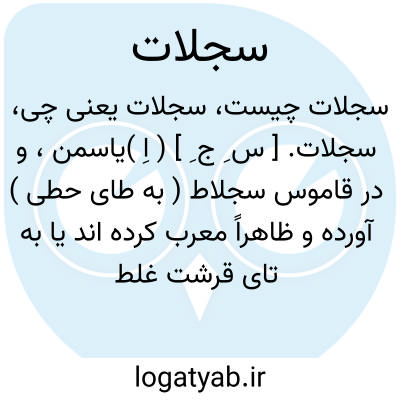 سجلات. [ س ِ ج ِ ] ( اِ )یاسمن، و در قاموس سجلاط ( به طای حطی ) آورده و ظاهراً معرب کرده اند یا به تای قرشت غلط خوانده اند. ( رشیدی ). یاسمین را یاسمن و یاسم و یاس نیز گویند و آن گلی است سپید و خوشبو. ( آنندراج ). رجوع به سجلاط شود.
