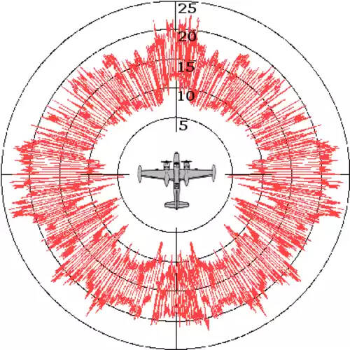 میزان بازتابش راداری بر حسب مقیاس یک متر مربع به شرح زیر است: