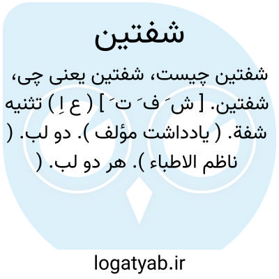 شفتین. [ ش َ ف َ ت َ ] ( ع اِ ) تثنیه شفة. ( یادداشت مؤلف ). دو لب. ( ناظم الاطباء ). هر دو لب. ( آنندراج ) ( غیاث اللغات ). و رجوع به شفة و شفتان شود.