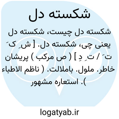 شکسته دل. [ ش ِ ک َ ت َ / ت ِ دِ ] ( ص مرکب ) پریشان خاطر. ملول. باملالت. ( ناظم الاطباء ). استعاره مشهور است. ( آنندراج ). دل شکسته. عمید. معمود. شکسته خاطر. ( یادداشت مؤلف ):