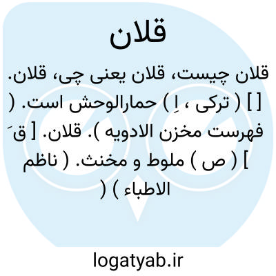 قلان. [ ق َ ] ( ص ) ملوط و مخنث. ( ناظم الاطباء ) ( استینگاس ). || ( مغولی، اِ ) نوعی از خراج که در شیروان گیرند. ( آنندراج ) ( ناظم الاطباء ) ( استینگاس ). خراج. سرانه: آمدن علاءالدین دره گز با شماره سیستان کرّت اوّل... و رسم قلان و قبجور نهادن. ( تاریخ سیستان ص 397 ).