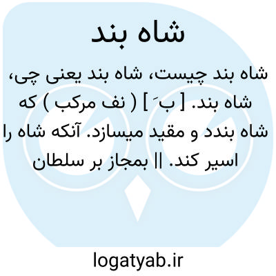 شاه بند. [ ب َ ] ( نف مرکب ) که شاه بندد و مقید میسازد. آنکه شاه را اسیر کند. || بمجاز بر سلطان مقتدر و توانا که دیگر سلاطین را مقهور کند و ببند آرد اطلاق شود: