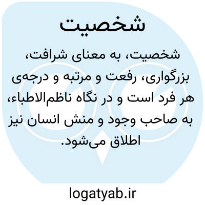 ( مصدر اسم ) ۱ - سجه مختص هر شخص خاصه هر فرد. ۲ - مجموعه عوامل باطنی یک شخص. مجموع نفسیات ( احساسات عواطف افکار ). یا شخصیت حقوقی. مجموعه افراد یک انجمن حزب یا یک موسسه که حقوق و تکالیف وی از طرف دولت - طبق مقررات خاص - شناخته شود.