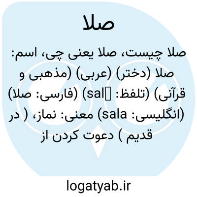 اسم: صلا (دختر) (عربی) (مذهبی و قرآنی) (تلفظ: salā) (فارسی: صلا) (انگلیسی: sala)