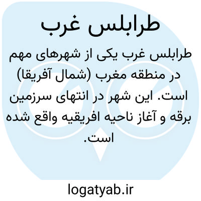 ۱ - ناحیه ایست در شمال غربی لیبی در ساحل بحرالروم ( مدیترانه ) و آن در قدیم مقرسه مستعمره فینیقی بود ( بهمیین مناسبت تریپولیس یعنی سه شهر نامیده شده ) این ناحیه بصورت یکی از ایالات بربر در آمد و توسط ایتالیا اشغال شد ( ۱۹۱۹ - ۱۹۱۲ م. ) در ۱۹۵۲ م. یکی از بخشهای مهم کشور مستقل لیبی گردید.وسعت آن ۱،۷۵۹،٠٠٠ کیلومتر مربع و جمعیت ۸٠٠٠٠٠ تن میباشد و محدود است از مغرب به تونس و الجزایر و از جنوب به ولایت فزان و از مشرق بولایت قیروان. از شهر های آن [زواره] و کرسی آن [ حمص ] است. ۲ - شهریست در ایالت مذکور در ساحل بحرالروم ( مدیترانه ۵۵۱٠٠٠ تن سکنه.