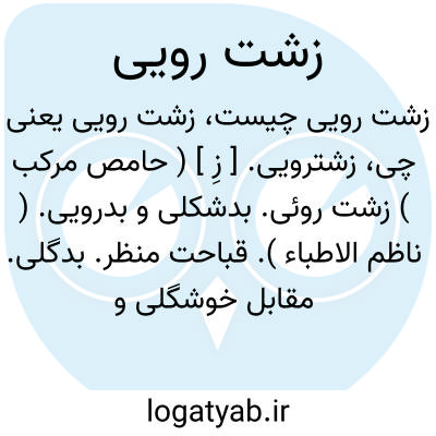 زشترویی. [ زِ ] ( حامص مرکب ) زشت روئی. بدشکلی و بدرویی. ( ناظم الاطباء ). قباحت منظر. بدگلی. مقابل خوشگلی و وجاهت. ( فرهنگ فارسی معین ):