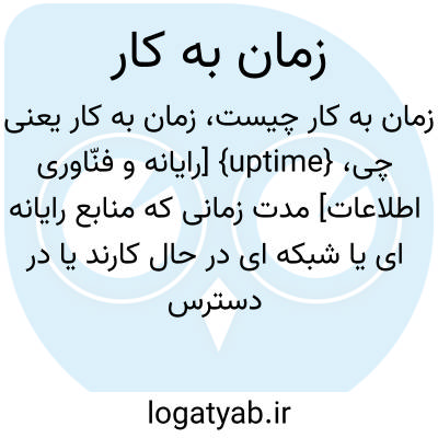 {uptime} [رایانه و فنّاوری اطلاعات] مدت زمانی که منابع رایانه ای یا شبکه ای در حال کارند یا در دسترس کاربر قرار دارند