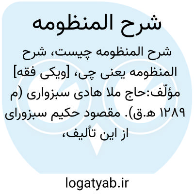 [ویکی نور] شرح المنظومة، تألیف حکیم حاج ملا هادی سبزواری (متوفی١٢٨٩ق)، از جمله منابع مهم در منطق و فلسفه اسلامی است. آیت‎الله حسن‎زاده آملی بر این کتاب حاشیه زده است. مقدمه و تحقیق آن نیز به قلم مسعود طالبی است.