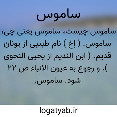 ساموس. ( اِخ ) نام طبیبی از یونان قدیم. ( ابن الندیم از یحیی النحوی ). و رجوع به عیون الانباء ص 22 شود.
