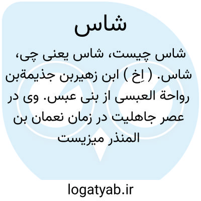 نبیند روی راحت هرکه شاس است.( ازشعوری ).این لغت در ناظم الاطباء پارسی شمرده شده لیکن یاقوت در معجم البلدان ذیل ( شاس ) بمعنی راهی میان مدینه و خیبر، در معنای کلمه گوید: ویقال: شاس الرجل یشاس اذا عرف فی نظره الغضب والحقد. که به معنی مذکور در شعوری و ناظم الاطباء نزدیک است و صاحب اقرب الموارد آرد: شاس الرجل، المنظر بمؤخر عینه تکبراً او تغیظاً و قیل صغّر عینه و ضم اجفانه للنظر. || بدنهاد. || بیدین. || بدکار و بدعمل. ( ناظم الاطباء ).
