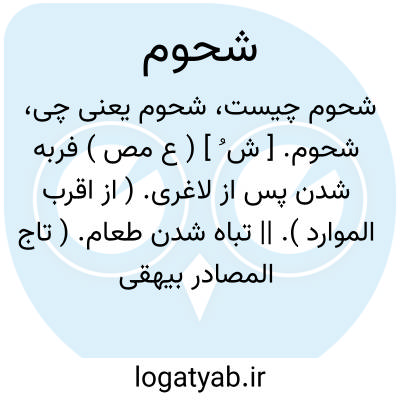 شحوم. [ ش ُ ] ( ع مص ) فربه شدن پس از لاغری. ( از اقرب الموارد ). || تباه شدن طعام. ( تاج المصادر بیهقی ). || ( اِ ) ج ِ شحم. ( اقرب الموارد ). رجوع به شحم شود: اهل تمیز از لحوم و شحوم بازارتنفر و تحرز نمودند. ( ترجمه تاریخ یمینی ص 297 ).
