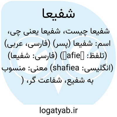 اسم: شفیعا (پسر) (فارسی، عربی) (تلفظ: šafieā) (فارسی: شفيعا) (انگلیسی: shafiea)
