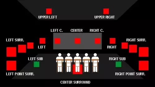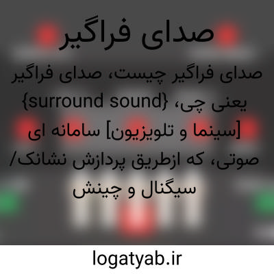 {surround sound} [سینما و تلویزیون] سامانه ای صوتی، که ازطریق پردازش نشانک/ سیگنال و چینش بلندگوها، جلوۀ صدای چندجهتی ایجاد کند