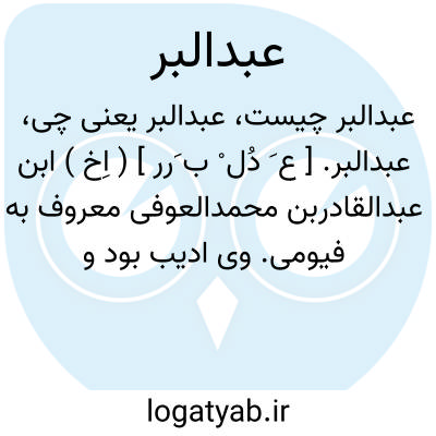 عبدالبر. [ ع َ دُل ْ ب َرر ] ( اِخ ) ابن عبدالقادربن محمدالعوفی معروف به فیومی. وی ادیب بود و به مکه و شام سفر کرد و در حدود دو سال در دمشق بماند. سپس به بلاد روم رفت و درآنجا منصبها یافت و به سال 1071 هَ. ق. در قسطنطنیه درگذشت. از تألیفات اوست: حسن الصنیع فی علم البدیع القول الوافی بشرح الکافی. منتزه العیون و الالباب فی بعض المتأخرین من اهل الاَّداب. اللطائف المنیفه فی فضائل الحرمین. بدیعیة علی حرف النون. بلوغ الارب و السول، بالتشرف بذکر نسب الرسول. ( الاعلام زرکلی ).