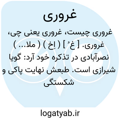 غروری. [ غ ُ ] ( اِخ ) ( ملا... ) نصرآبادی در تذکره خود آرد: گویا شیرازی است. طبعش نهایت پاکی و شکستگی داشت. در ایام حیات مرتکب امور دنیوی نشد از آن سبب عمرش به هشتاد رسید. کمال زنده دلی را داشت. به خدمت بسیاری از اهل حال رسید. در اواخر به اصفهان فروکش کرده در قهوه خانه ساکن بود. یاران اهل معنی جهت ادراک صحبت او به قهوه خانه می آمدند. مدار خود را از جدول کشی میگذرانید. والد کمینه ربط بسیار به اوداشته است. فقیر به اتفاق ایشان به خدمت او میرفتم.توجه بسیار به فقیر میکرد، و در علم رمل دست عظیمی داشت. در اواخر زمان شاه صفی فوت شد. مثنوی در بحر تحفة العراقین دارد. این چند بیت را در معراج گوید: