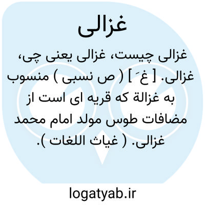غزالی. [ غ َزْ زا ] ( ص نسبی ) منسوب به غزال. لقب ابوحامد محمدبن محمدبن محمدبن احمد طوسی، و لقب برادر او احمدبن محمدبن محمدبن احمد است. صاحب غیاث اللغات گوید: در این مورد غزالی به تخفیف ثانی صحیح است و به تشدید آن محض خطاست. رجوع به غَزّال و ابوحامد غزالی و احمد غزالی و غزالی و مدخل قبل غزالی شود.