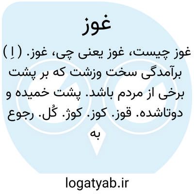 غوز. ( اِ ) برآمدگی سخت وزشت که بر پشت برخی از مردم باشد. پشت خمیده و دوتاشده. قوز. کوز. کوژ. کُل. رجوع به قوز و کوژ شود.