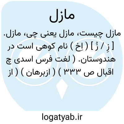 مازل. [ زِ / زُ ] ( اِخ ) نام کوهی است در هندوستان. ( لغت فرس اسدی چ اقبال ص 333 ) ( ازبرهان ) ( از آنندراج ) ( از ناظم الاطباء ):