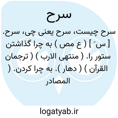 سرح. [ س َ ] ( ع مص ) به چرا گذاشتن ستور را. ( منتهی الارب ) ( ترجمان القرآن ) ( دهار ). به چرا کردن. ( المصادر زوزنی ). || چریدن ستور. || ریخ زدن. || روان و جاری شدن بول. || بیرون کردن آنچه در سینه بود. || فرستادن. ( منتهی الارب ) ( اقرب الموارد ). کسی را به جایی فرستادن. ( تاج المصادر بیهقی ).