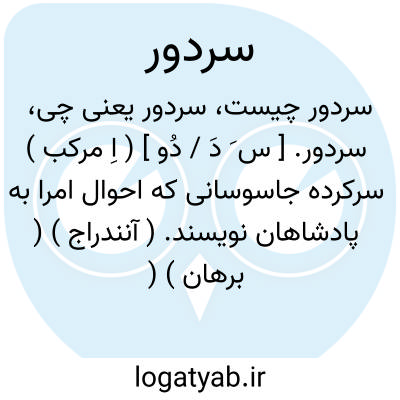 سردور. [ س َ دَ / دُو ] ( اِ مرکب ) سرکرده جاسوسانی که احوال امرا به پادشاهان نویسند. ( آنندراج ) ( برهان ) ( ناظم الاطباء ). رئیس جاسوسان. ( ناظم الاطباء ).