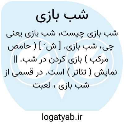 شب بازی. [ ش َ ] ( حامص مرکب ) بازی کردن در شب. || نمایش ( تئاتر ) است. در قسمی از شب بازی، لعبت ها نشان می دادند برای بازی تئاتر و از قدیم در فارسی دو لفظ بوده است اول شب بازی و دیگر شبیه درآوردن که دوم مخصوص تعزیه بود ( و ممکن بود برای بازی تئاتر یکی از دو لفظ مذکور گرفته شود ). ( از فرهنگ نظام ). شب بازی دو نوع است یکی آنکه در شب به صور مختلفه و به هیأتها برآیند و امردان را به شکل زنان متشکل سازند و دوم آنکه خیمه را برپاکرده اشکالی منقوشه بر صفحه چرم و کاغذ در نظر جلوه دهند، غایتش اینکه قسم اول گاهی روزانه هم این عمل کنند و قسم ثانی مخصوص شب است. ( از آنندراج ). نیرنگ و بازی در شب. ( ناظم الاطباء ). رجوع شود به شب باز.