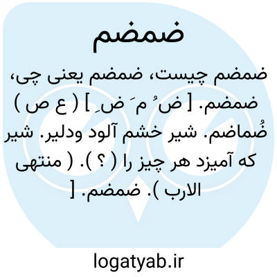 ضمضم. [ ض ُ م َ ض ِ ] ( ع ص ) ضُماضم. شیر خشم آلود ودلیر. شیر که آمیزد هر چیز را ( ؟ ). ( منتهی الارب ).