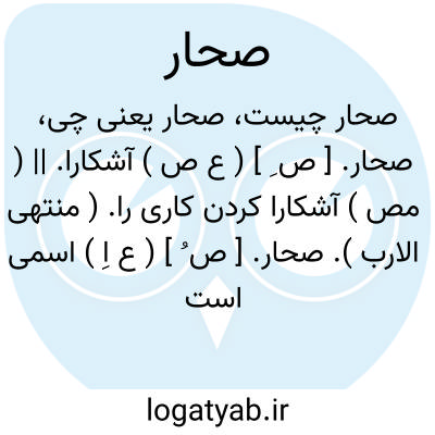 صحار. [ ص ِ ] ( ع ص ) آشکارا. || ( مص ) آشکارا کردن کاری را. ( منتهی الارب ).