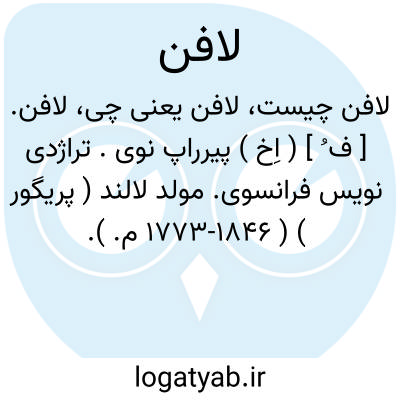 لافن. [ ف ُ ] ( اِخ ) پیرراپ نوی. تراژدی نویس فرانسوی. مولد لالند ( پریگور ) ( 1773-1846 م. ).