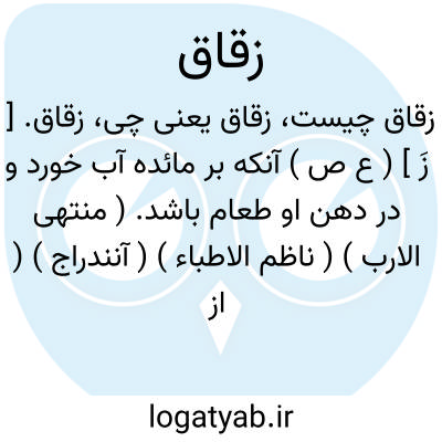زقاق. [ زَ ] ( ع ص ) آنکه بر مائده آب خورد و در دهن او طعام باشد. ( منتهی الارب ) ( ناظم الاطباء ) ( آنندراج ) ( از اقرب الموارد ).