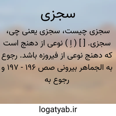 سجزی. [ ] ( اِ ) نوعی از دهنج است که دهنج نوعی از فیروزه باشد. رجوع به الجماهر بیرونی صص 196 - 197 و رجوع به دهنج در همان کتاب و این لغت نامه شود.