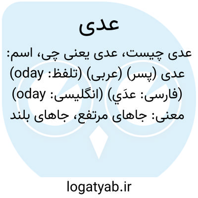 عدی. [ ع َ دی ی ] ( ص نسبی ) نسبت است به عدی بن افلت. رجوع به عدی بن افلت شود. || نسبت است به عدی بن جندب. رجوع به عدی بن جندب شود. || نسبت به عدی بن اسامةبن مالک بن بکربن حبیب است. رجوع به عدی بن اسامة شود. ( از لباب الانساب ج 2 ص 127 ).