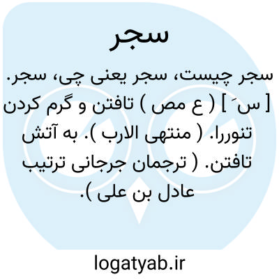 سجر. [ س َ ] ( ع مص ) تافتن و گرم کردن تنوررا. ( منتهی الارب ). به آتش تافتن. ( ترجمان جرجانی ترتیب عادل بن علی ). || پر کردن جوی را. ( منتهی الارب ). پر کردن. ( تاج المصادر ) ( دهار ) ( ترجمان القرآن ترتیب عادل بن علی ). || ریختن آب را در حلق کسی. || بانگ کردن و نالیدن. ( منتهی الارب ). ناله واکشیدن شتر. ( تاج المصادر بیهقی ). ناله دراز کشیدن. ( دهار ). || تهی کردن. ( تاج المصادر بیهقی ) ( دهار ) ( المصادر زوزنی ) ( ترجمان جرجانی ترتیب عادل بن علی ).