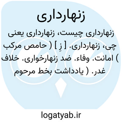زنهارداری. [ زِ ] ( حامص مرکب ) امانت. وفاء. ضد زنهارخواری. خلاف غدر. ( یادداشت بخط مرحوم دهخدا ). امانت داری. عمل زنهاردار: