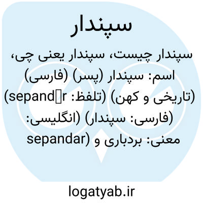 اسم: سپندار (پسر) (فارسی) (تاریخی و کهن) (تلفظ: sepandār) (فارسی: سپندار) (انگلیسی: sepandar)